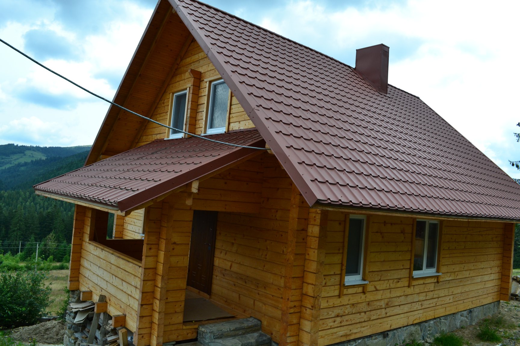Новий двоповерховий будинок з бруса дерева. Три спальні, дерев'яні ліжка з ортопедичними матрацами. На першому поверсі спальня - 2 односпальні ліжка. Другий поверх: перша спальня – два односпальні. Друга спальня - двоспальне ліжко. Великий лаунж з розкладним двоспальним диваном, безкоштовним Wi-Fi і 24-дюймовим монітором, динаміками.Домашній кінотеатр (проектор). Металопластикові вікна з протимоскітними сітками. 2 санвузли, душ, ванна. Гаряча вода. Кухонна піч на дровах, з лежаком. 2 електроплити, електрочайник. Холодильник, пральна машина, тепла підлога. Автономне опалення – батареї, водянене. У літній кухні плита (дерево є) і мангал (є шампури). Гарний вид на гори, біля лісу, дорога тільки до будинку, тихо. Сусіди – за 100 м. Можливе приготування їжі за додаткову плату.