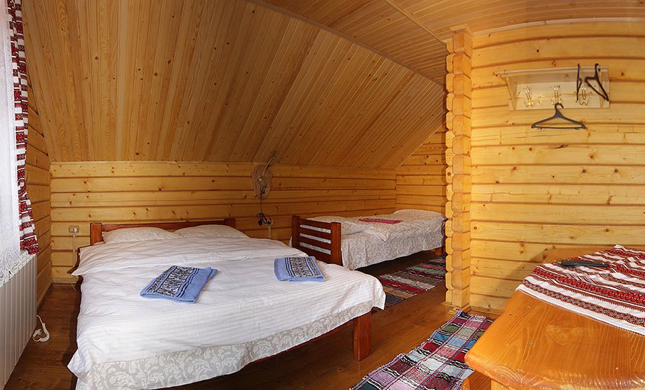 - Тримісний номер - двоспальне та односпальне ліжка, вішалка для одягу, стіл зі стільцями, телевізор, балкон; санвузол (душова кабіна, туалет, умивальник).