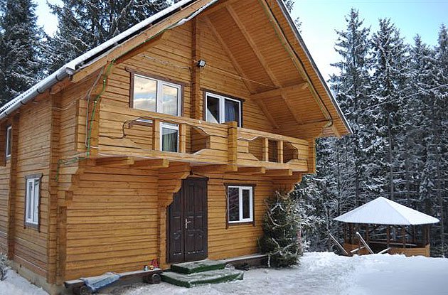 Двоповерхові дерев'яні котеджі "Лісова поляна" Яблуниця: перший на 8-10 осіб, другий (котедж сімейного типу) на 12 осіб.