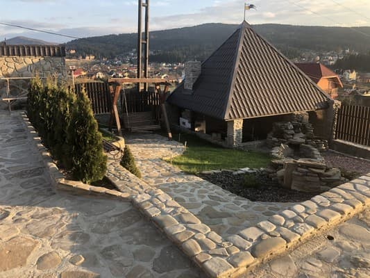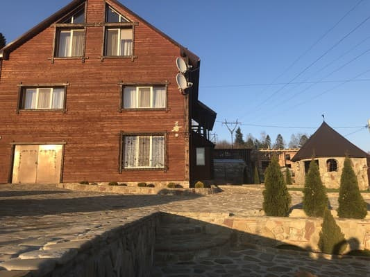 Гостьовий будинок "Козацький дворик" розташований на горі біля лісу. Номерний фонд складається з 8 затишних номерів. Кожен номер обладнаний телевізором з плоским екраном і окремою ванною кімнатою. Також в готелі передбачені безкоштовний Wi-Fi, стоянка для автомобіля. До послуг гостей холодна і гаряча вода цілодобово. Є повністю обладнана кухня для самостійного приготування їжі. Також на території знаходиться паркінг, зона відпочинку, альтанки і мангал. При необхідності адміністрація допомагає організувати екскурсію. Можна взяти в оренду санчата. Відстань від гостьового будинку "Козацький дворик" до автостанції становить 950 м.
