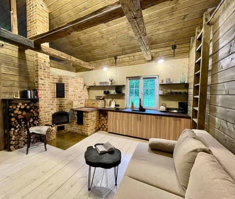Котедж "Kruk house" розташований біля лісу в селищі Орів. До послуг гостей затишний будинок з усіма необхідними зручностями: двома двоспальними ліжками, розкладним диваном, кухнею, на якій є індукційна плита, піч, камін, кавоварка, посудомийна машина, електричний чайник, холодильник та необхідний посуд з кухонним приладдям. У ванній кімнаті встановлено ванну, душ, туалет, є рушники, капці, туалетно-косметичні засоби, фен. З ванни двері ведуть до сауни. Гості можуть відчути атмосферу минулого з автентичними речами, які знайшли своє друге життя на подвір’ї котеджу, додаючи унікальності та характеру. В котеджі є велика відкрита тераса з видом на вітряки, місце для паркування, мангал, дрова, чан та поруч є джерело “Нафтуся”. Можливе розміщення з тваринами за попереднім узгодженням. Чаном та сауною гості можуть користуватись за окрему плату. Відстань від котеджу "Kruk house" до центру селища складає 6,1 км, до залізничної станції Стинава Нижня - 12,2 км, до автовокзалу у Львові - 97 км, до автостанції Стрий - 34 км.