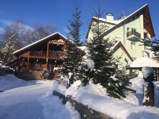 Готель "Лагуна" знаходиться в селищі Славське, в 600 м від бугельного витягу на горі Погар. Номерний фонд готелю складається з 14 номерів категорії "стандарт". Кожен з номерів обладнаний телевізором з кабельним телебаченням, холодильником, власним санвузлом. Надається доступ до Wi-Fi. У готелі є ресторан на 50 місць з літньою терасою. В меню страви української, закарпатської та гуцульської кухні. Також на території є баня на дровах, парковка, дитячий майданчик, альтанки. Поряд з готелем можна взяти на прокат лижі, санки, снігоходи або сноуборди, влітку - велосипеди або квадроцикли. Відстань до підйомника на горі Тростян - 2,5 км, на горі Політехнік - 800 м, до залізничної станції - 550 м, до ГК "Захар Беркут" - 6,4 км.