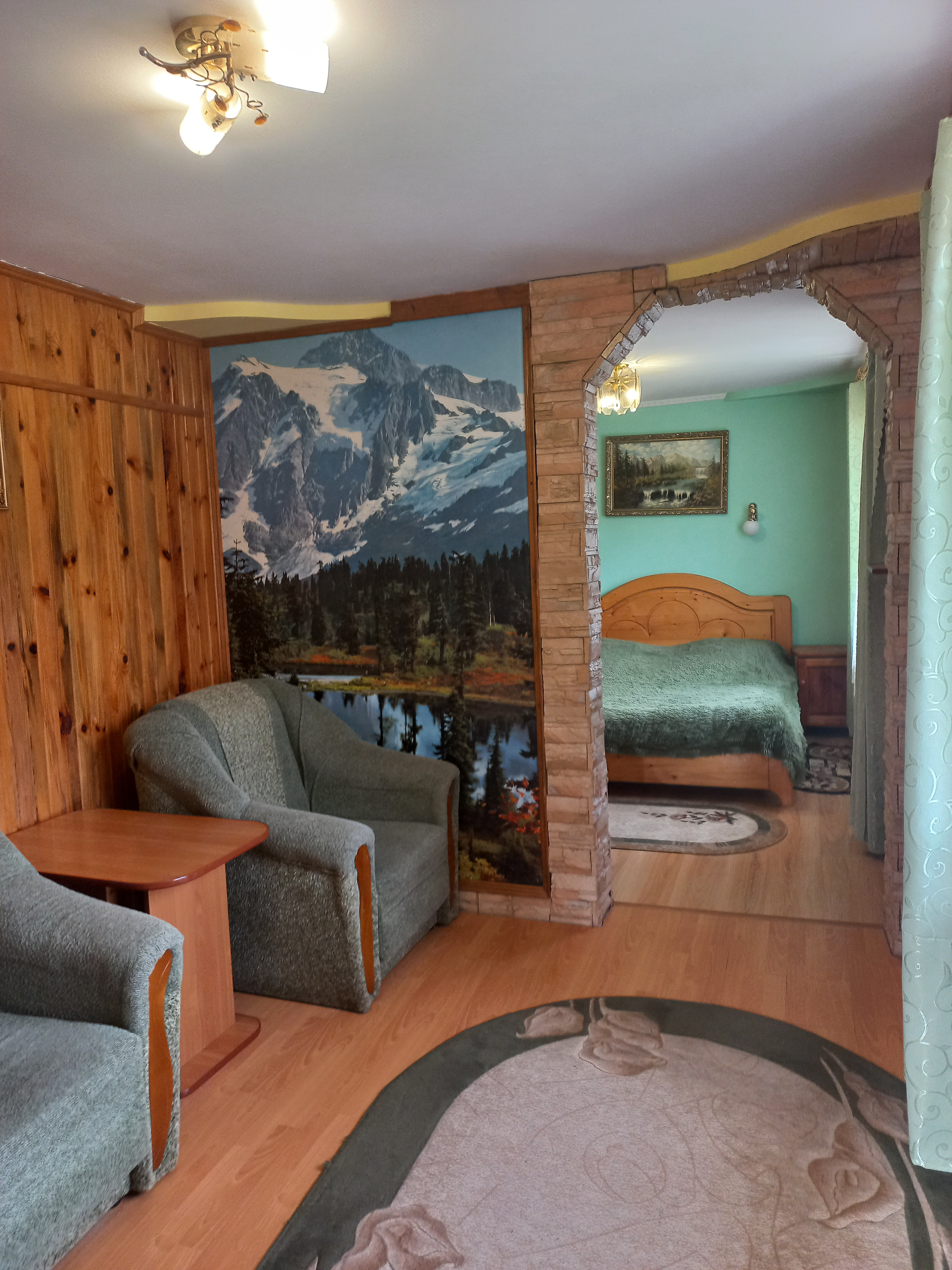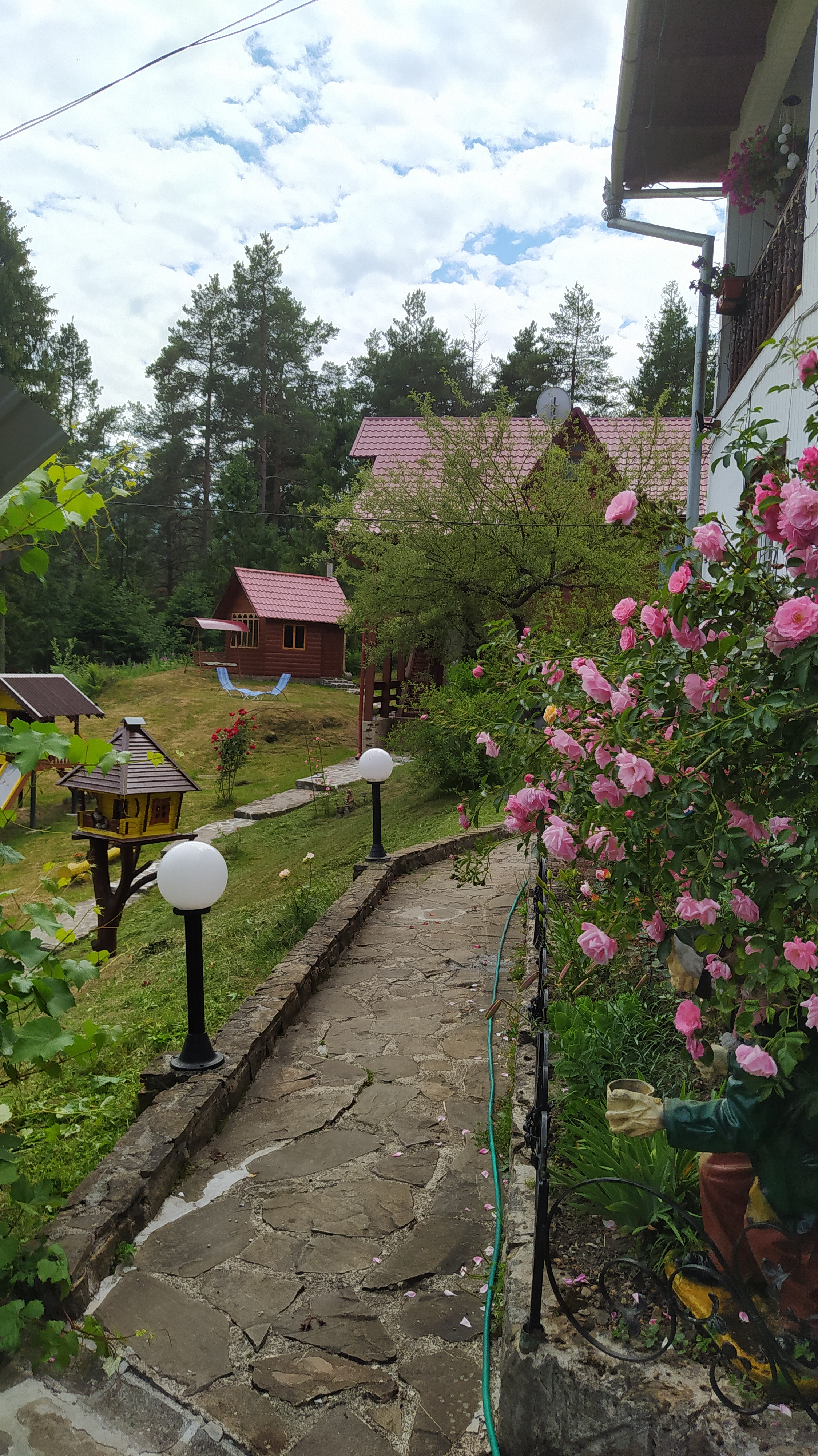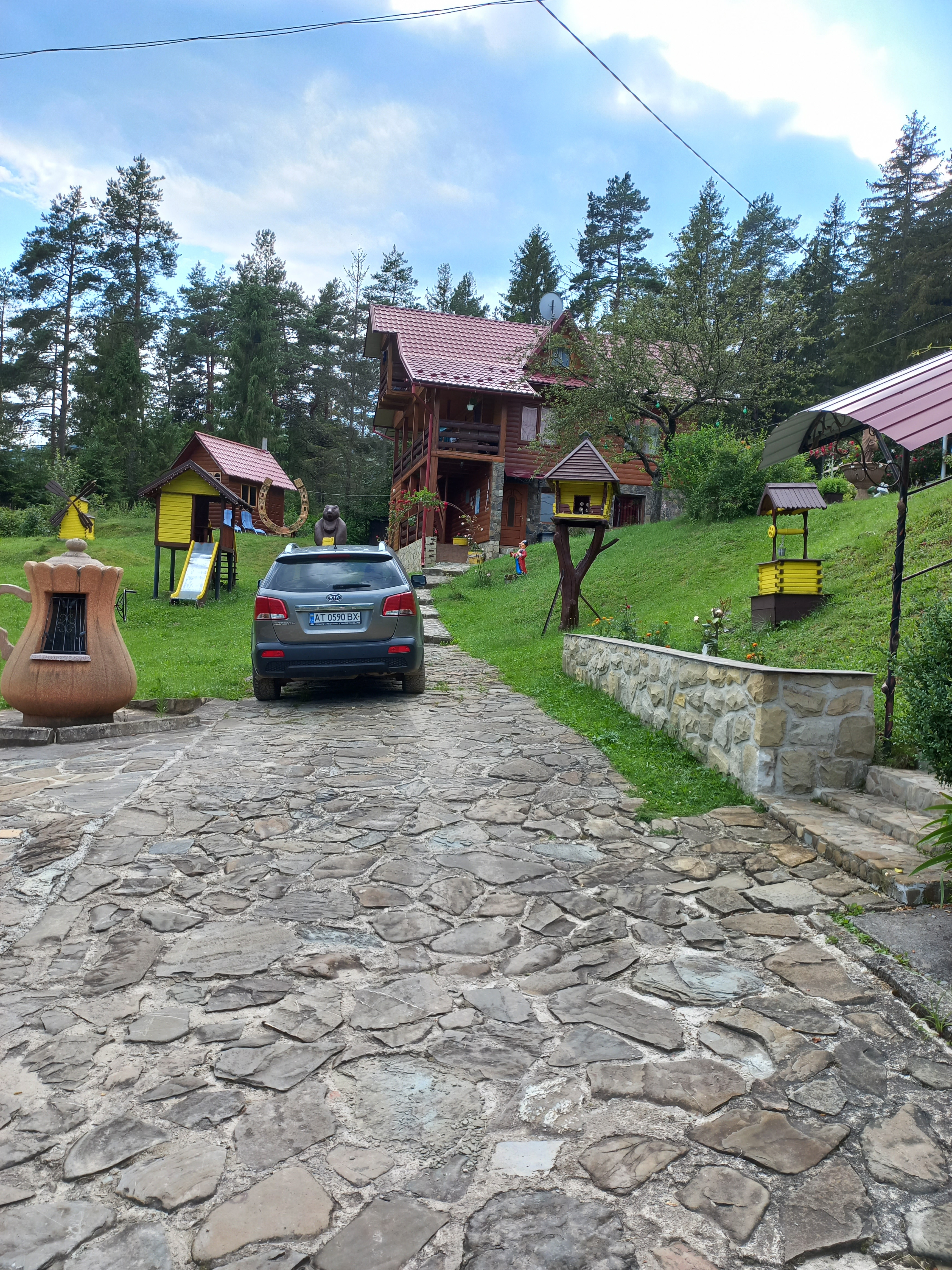 Котедж, і окремі номери, знаходяться в чудовому місці! Навколо смерековий і сосновий ліс. За садибою бере початок туристична стежка Довбуша, дорога на гору Маковиця. До водоспаду Пробій і парку Гедзьо 1,5 км. Поруч магазини, ресторани, кафе Крим. До послуг відпочиваючих сауна на дровах, з контрастним басейном, мисливський будиночок, гойдалки, дитяча гірка, джипінг, ловля форелі, чани. У нас тихо і спокійно!