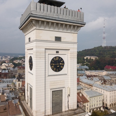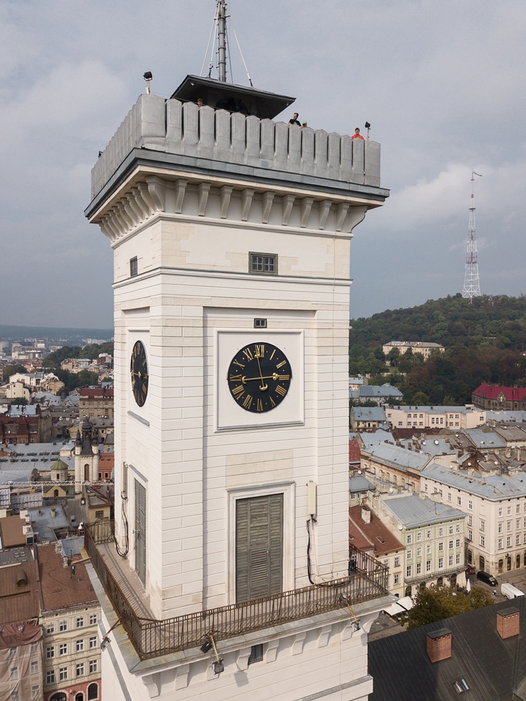 Застерігаємо: виходити до оглядового майданчику по вузьким гвинтовим сходам складно. Але воно того варте, адже з ратуші відкривається чудесний краєвид на історичну частину Львова.