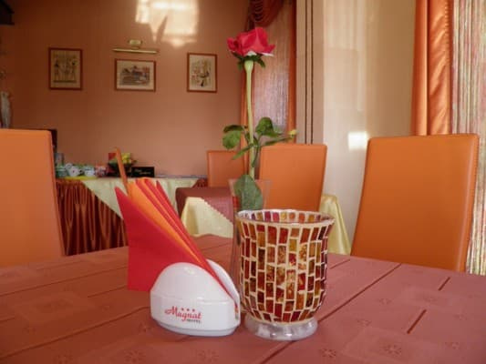 Готель "Магнат" розташований на міжнародній автотрасі М-06 Київ - Чоп (773 км), на околиці старовинного міста Мукачево. Номерний фонд готелю "Магнат" представлений 10 просторими номерами, які обладнані зручними меблями, кондиціонером, телевізором, безкоштовним Wi-Fi і власною ванною кімнатою. З вікон номерів відкривається неповторний пейзаж на Мукачівський старовинний замок «Паланок», який знаходиться на відстані 2 км від готелю. На території готельного комплексу "Магнат" знаходиться автостоянка з цілодобовою охороною. Відстань від історичного центру міста Мукачево - 2 км, від залізничного вокзалу - 4 км. Зручне розташування готелю дає можливість гостям швидко добратися до державного кордону України: Угорщина - 30 км, Словаччина - 35 км, Румунія - 70 км.