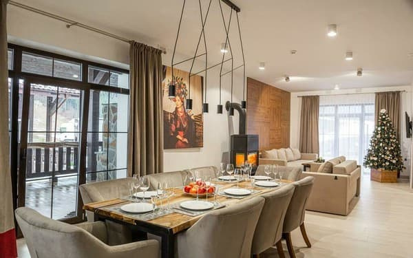 Котедж "Malovanka" розташований у котеджному містечку Bukovel Residence з виходом на схил 2R. Відстань до гірськолижного витягу Lift №5 складає 350 метрів. Інтер'єр котеджу виконаний у сучасному стилі. Житлова площею 132 м. кв., котедж розрахований для компанії із чотирьох осіб та двох дітей. На першому поверсі обладнано кухню-студію з виходом на терасу. Є обідня зона та лаундж з каміном. Кухонна зона обладнана всією необхідною технікою (посудомийна машина, електрична плита, духова шафа, електрочайник, холодильник). Тераса обладнана зоною барбекю та вуличними меблями. На другому поверсі розташовані дві спальні з окремими ванними кімнатами. Особливістю котеджу "Malovanka" є власна дитяча кімната обладнана двоярусним ліжком, м'яким кріслом та письмовим столом. Відстань від котеджу "Malovanka" до міста Яремче складає 35 км., до автовокзалу в Івано-Франківську – 110 км., до залізничного вокзалу у Татарові – 14,3 км.