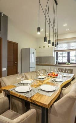 У котеджі є кухня для самостійного приготування їжі, тераса з зоною-барбекю. Поряд кілька ресторанів.