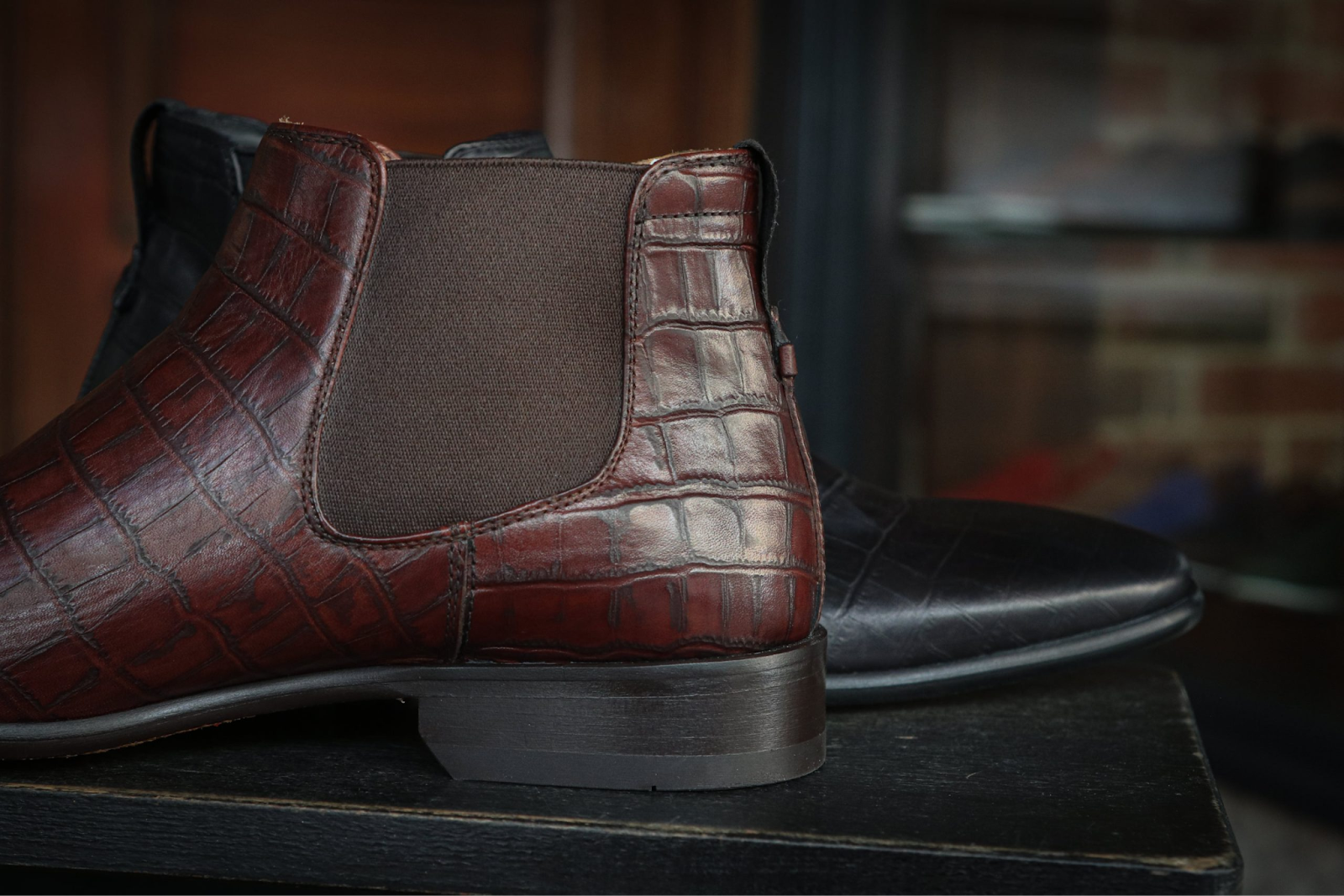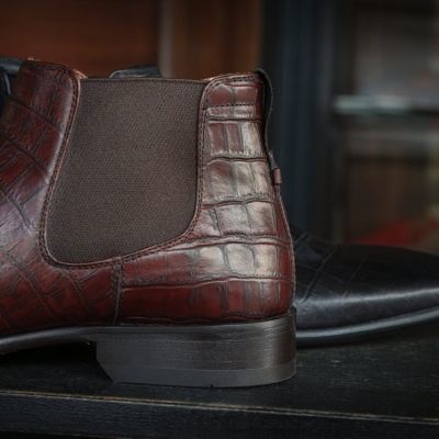 - Черевики з тисненням під шкіру рептилій — для сміливих і впевнених у собі чоловіків.