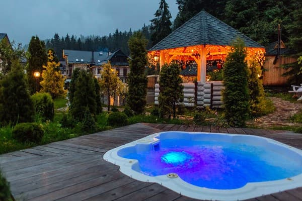 База відпочинку "Ведмежий двір" розташована в Поляниці, в 6,4 км від гірськолижного комплексу Буковель. На території бази відпочинку знаходиться два двоповерхові дерев'яні котеджі: White House для 8 осіб і Family House для 6 осіб і можливістю 2 додаткових місць. У кожному двомісні номери, санвузол, вітальня з каміном і кухня обладнана усією необхідною технікою. Ресторан Honey здивує гостей поєднанням української та європеської кухонь. Також гості можуть скористатися сервісом і всіма послугами бази відпочинку "Ведмежий двір" це і великий басейн з підігрівом і гуцульське СПА (лазня і гарячі бочки), дитячий майданчик, прокат гірськолижного спорядження, BBQ-place, конференц сервіс та автостоянка. Відстань до залізничного вокзалу Ворохта становить 15,1 км, до автовокзалу Поляниця - 4,8 км.