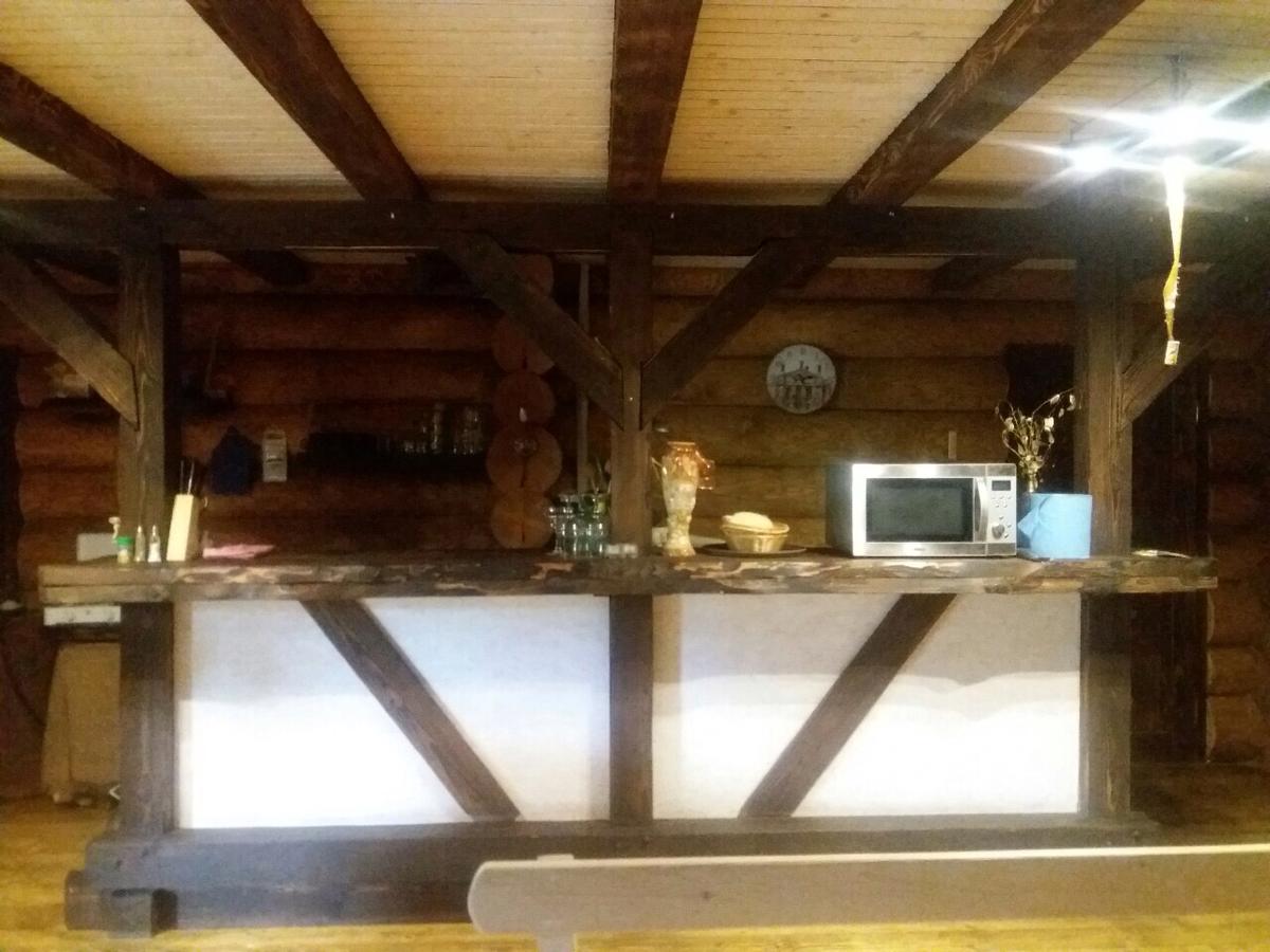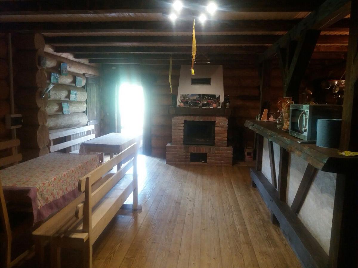 - На першому поверсі - камінний зал (столи з лавами, телевізор, кухонний куток - газова плита, мікрохвильова піч, холодильник, електрочайник, посуд, мийка, тераса), 2 двомісні номери (у кожному - двоспальне або 2 односпальні ліжка, вішалка для одягу, телевізор, балкон; санвузол - душова кабіна, туалет, умивальник, фен), 2 сімейні номери (у кожному - двоспальне та двоярусне ліжка, вішалка для одягу, телевізор, балкон; санвузол - душова кабіна, туалет, умивальник, фен).