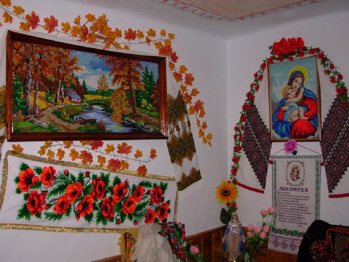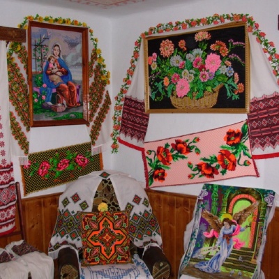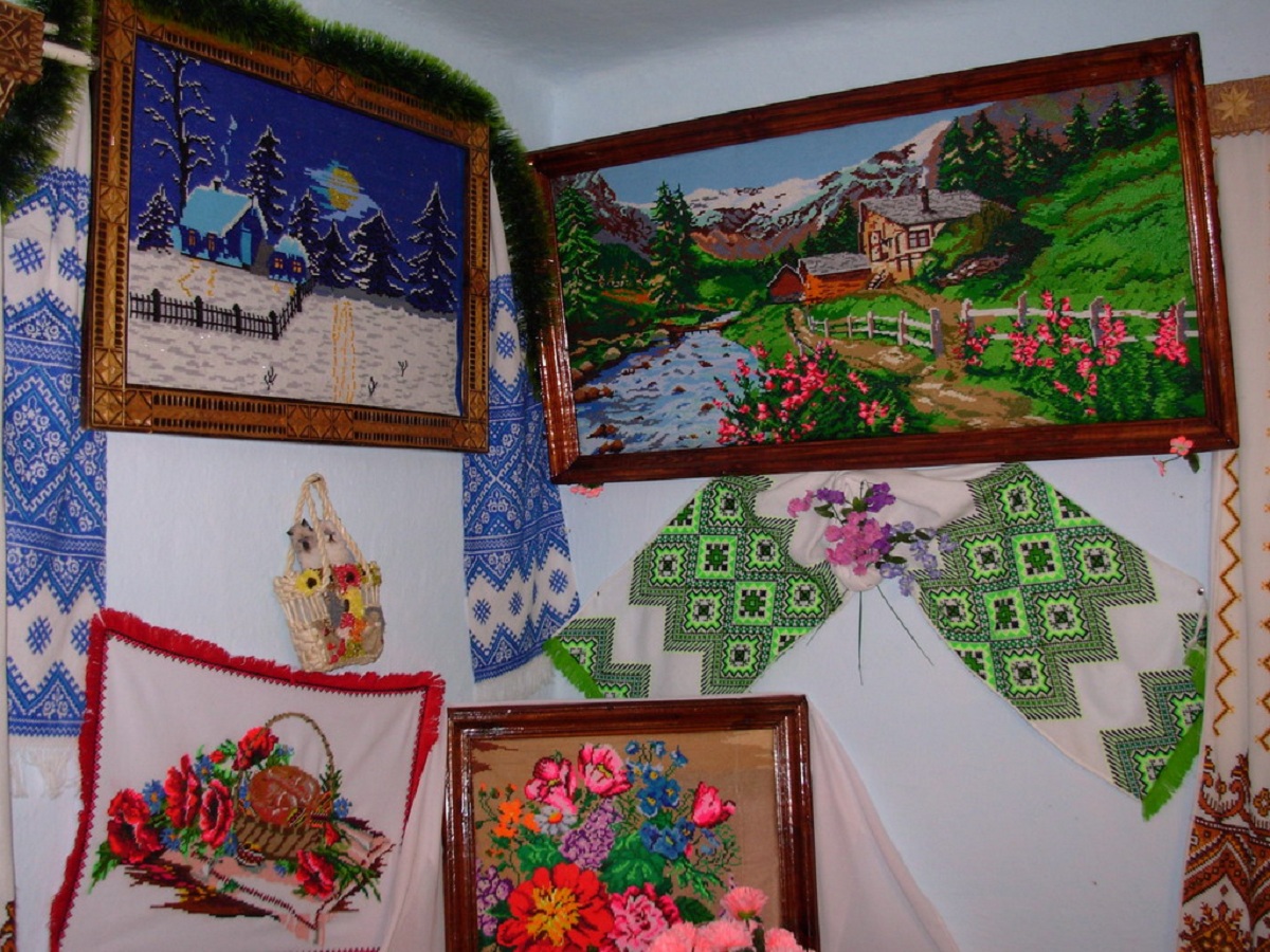 Серед експонатів – кольорові картини, ікони, портрети, пейзажі, наволочки, рушники, національні костюми та багато інших, найрізноманітніших елементів традиційної гуцульської вишивки.