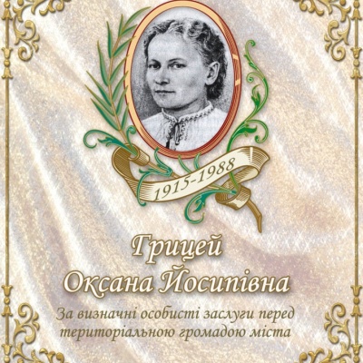 Крім того, Оксана Грицей ще й активна учасниця національно-визвольних змагань, громадський діяч і педагог. Бог дав Оксані не лише великий талант, але й важку тернисту дорогу із такою кількістю випробувань, яких вистачило б на кілька життів. Але з Божою допомогою вона не лише подолала всі труднощі, а й досягнула великих успіхів та здобула широке визнання свого таланту. Обдарована художниця, Заслужений майстер народної творчості, член Спілки художників України Оксана Йосипівна Грицей – неперевершений портретист і митець унікального жанру –художнього випалювання на дереві.