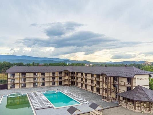 Готель "Nikoletta" розташований в курортній зоні селища Солотвино. Номерний фонд готелю складає 54 номери, категорії "Стандарт", "Делюкс" та "Люкс". До послуг гостей номери з двоспальним ліжком та розкладним диваном, приліжковими тумбами, шафою, телевізором з плоским екраном та безкоштовним Wi-Fi доступом. Санвузол з душовою кабіною, феном та туалетно-косметичними засобами. На території є ресторан, альтанки, дитячий ігровий майданчик, джакузі, дитячий басейн, комплекс басейнів з морською і прісною водою, парковка для автомобілів. Відстань від готелю "Nikoletta" до залізничної станції 2,9 км, до автостанції 2,9 км.
