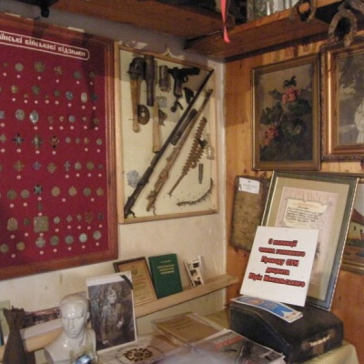Від колекції пана Микольського аж подих перехоплює. Шабля січового стрільця з Маківки, снаряд найбільшої австрійської гармати "Merzer" калібру 30,5 см Першої світової війни, різноманітні міни та ручні гранати, патрони від кулемета, шолом німецького вояка та австро-угорського солдата з написом на гербі "З Богом - за короля і батьківщину", багнети і люфи. В експозиції - радіостанції червоної армії, вермахту та американська U.S. Army. Остання з повним набором кодів, яку упівці відбили на Волині у польського загону Армії Крайової. Є й інші "свідки" тих воєн: німецький патефон, старі іноземні мапи Карпат, запальнички, зроблені з гільз, торби, черевики, фляги.