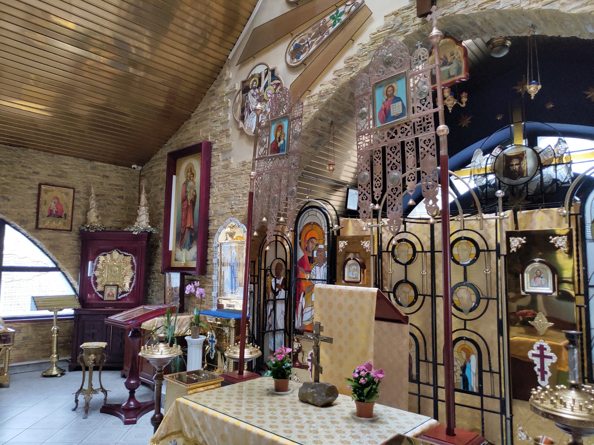 Храм має щось таке світле і щире. А сучасна прозора аркоподібна стеля зовсім не вибивається з загального архітектурно ансамблю. Навпаки, вона там логічна і доречна.