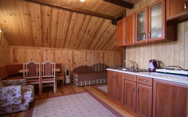 Кожен номер обладнаний електричною плиткою, мікрохвильовою піччю, холодильником, необхідним посудом. Послуги замовлення харчування немає. Неподалік від котеджу є ресторан.
