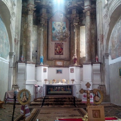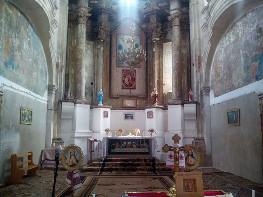 Зайдіть всередину католицької святині і зверніть увагу на фресковий кладку, яка збереглася тут з 18 століття. Різьба амвона, головного вівтаря, над яким зображена Божа Матір, іконостасу та двох маленьких вівтарів належить скульптору Йогану Пінзелю.