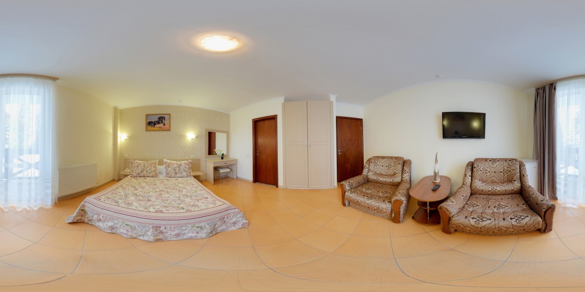 - Номер Напівлюкс має двоспальне ліжко, шафу, телевізор, балкон, розкладне крісло та санвузол (душ, туалет, умивальник).