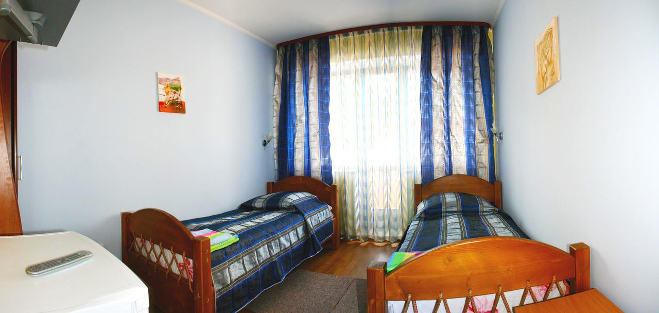 - Стандартний двомісний номер з 2 окремими ліжками та видом на гори, балконом та телевізором із супутниковим телебаченням.