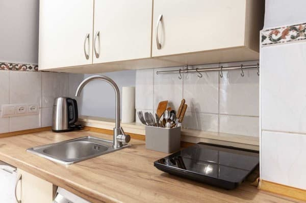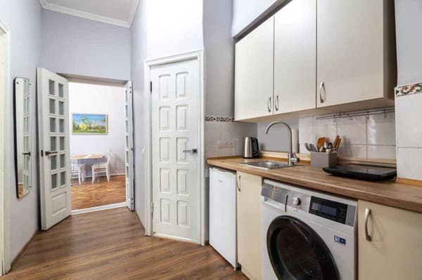 Кухня обладнана всіма необхідними меблями і побутовою технікою для самостійного приготування їжі. Поруч є безліч кафе.