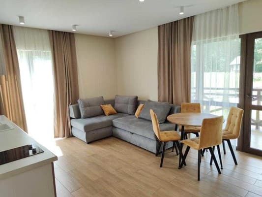 В апартаментах є власна кухня, повністю оснащена всім необхідним для комфортного приготування їжі. Також на території комплексу знаходиться ресторан української кухні, який пропонує гостям можливість насолодитися смачними та автентичними стравами, що можна замовити в меню.
