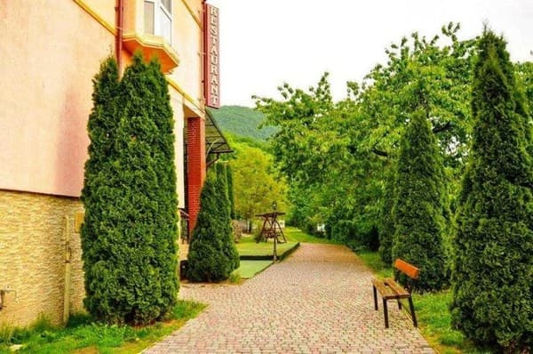 Пансіонат "Орлине гніздо" розташований у передгір'ї Чорної гори безпосередньо на березі смарагдової і грайливої річки Тиса, в найтеплішому районі Закарпаття. Унікальний і неповторний ландшафт, який об'єднує лісові гори і скелі, придатні для альпінізму, разом з глибоким чистим озером, що знаходиться поруч з пансіонатом, штучні водоспади, підсвічені вночі, допоможуть Вам забути про повсякденні турботи і отримати справжнє задоволення. Пансіонат "Орлине гніздо" пропонує до послуг відпочиваючих комфортабельні номери, ресторан, бар, дегустаційний зал, оригінальну терасу, сауну, закритий двозонний басейн і два відкриті басейни, тенісні корти, дитячий майданчик, оздоровчі програми та наповнення Вашого дозвілля (туристичний рафтинг по Тисі, гірськолижний спорт, пішохідні та велосипедні прогулянки в горах, рибалка, дискотеки, концерти). Також пропонуємо екскурсійні програми: Старовинне місто над Ужем; Замки Закарпаття; Мінеральні джерела Закарпаття; Синевир; Долина нарцисів, Троянди Закарпаття; Іза; Швейцарська сироварня; Термальні джерела. У пансіонаті знаходиться конференц-зал на 100 посадочних місць з аудіо- та відеотехнічними пристроями, з можливістю доступу до інтернету, що ідеально підходить для проведення ділових переговорів, конференцій, симпозіумів та семінарів.