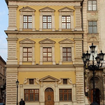 У 1737-1739 році будинок перебудували, звівши контрфорси. Про будо свідчить напис на фасаді. На дверних і віконних оздобах залишилися елементи різьби по білому камені. Орігіналом залишилися портал та вікна, обрамлені дельфінами. Дельфіни покликані оберігати від небезпек. У 19 столітті містилась книгарня Вільда, клуб львівської інтелегенції. У будинку мешкав польський поет Корнель Уєйський. В кінці сімдесятих виявився аварійний стан будинку. Ремонт більше нашкодив ніж приніс користі. Будинок передали реставратори. 26 років тривав ремонт та реставрація. Урочисте відкриття відбулося 18 грудня 2005 року. Завдяки малюнкам які збереглися з тих часів, відтворено стиль приміщення і дизайн меблів. Зараз там розміщують експозиції під егідою. 2008 рік у рамках святкування 10-річчя внесення Ансамблю до списку світової спадщини ЮНЕСКО. В палаці відбулося урочисте відкриття музею пошти. Чудове поєднання інтер'єрів та експонатів, щоб передати стиль часу. Унікальні експонати, цікава екскурсія, саме звідси потрібно починати знайомство зі Львовом, рекомендуємо.
