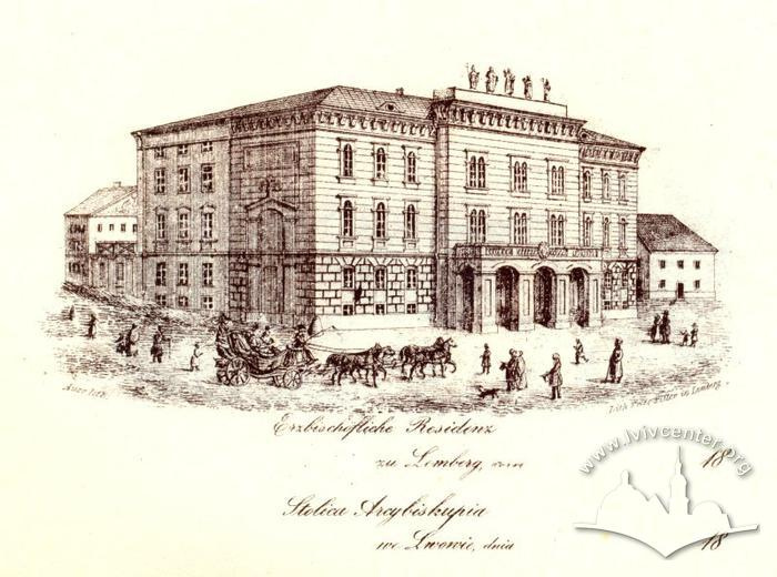 Ділянку для будівництва палацу архієпископів подарував правитель Королівства Русі - князь Владислав Опольчик у 1375 році латинському єпископу Матвію з Егера. У 14 столітті місто не віддавало ділянку Галицькому архієпископу РКЦ Бернарду , який наклав на Львів - заборону відправляти релігійні обряди, потім відлучив місто від церкви. Латинський архієпископ Перемишля Ерік сняв інтердикт та відлучення, Бернарда відлучили від церкви із за скарг Львів'ян. В 1405 і 1420 роках в будинку мешкав князь Свидригайло, якого приймали з вином і дарунками. Сучасний будинок був зведений за сприяння латинського архієпископа Львова Станіслава Гроховського. В 17 столітті - була одна з найпишніших кам'яниць, що належала архієпископам. У 1845 році будинок був перебудований, фасад зроблений у стилі віденського класицизму, добудували четвертий поверх. 1908 році тут діяло казино урядників. З 1957 року у будинку розміщується бібліотека для юнацтва. Послідня реставрація проводилася у 1980-их.