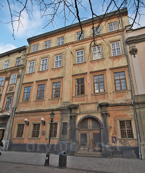 Будинок з цегли, прямокутний, видовжений, чотирьохповерховий. Має широкий шестивіконний фасад з фігурним обрамленням вікон. На першому поверсі стоїть масивний портал 17 століття з двумя декоративними коринфськими колонами. Була знищена пам'ятна таблиця порталу про смерть короля Михайла Корибут-Вишневецького (1673).