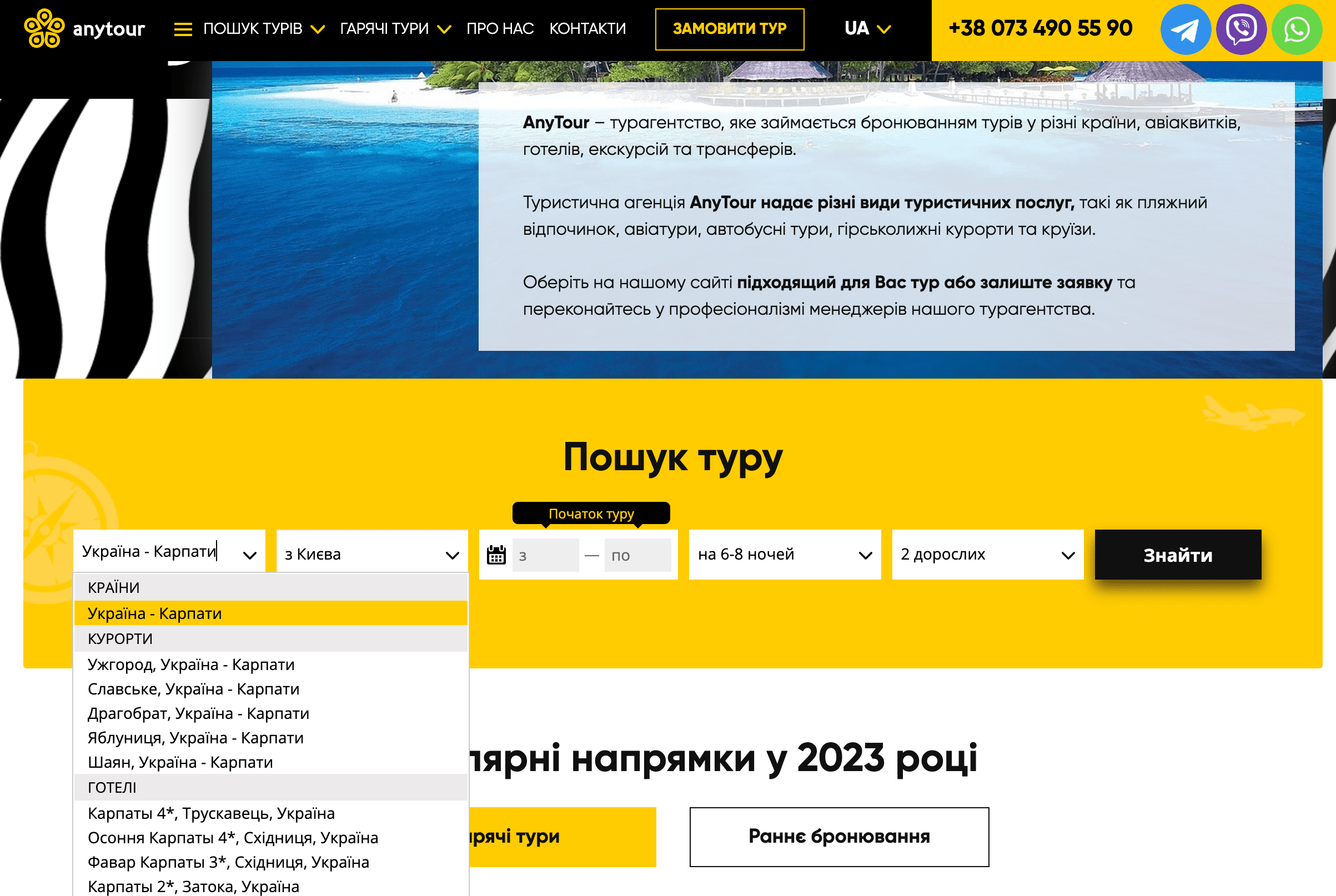 Турагенство AnyTour - це надійний партнер для подорожей в Карпати. Вони допоможуть вам відкрити всю красу цього чарівного регіону, насолодитися природними пам'ятками та отримати море позитивних вражень. Звернувшись до AnyTour, ви можете бути впевнені, що ваша подорож буде організована на високому рівні і ви зможете насолодитися своїм відпочинком без жодних клопотів.