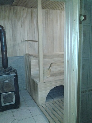 - У цоколі - двомісний №5 (двоспальне ліжко, шафа для одягу, телевізор, холодильник; санвузол - душова кабіна, туалет, умивальник, фен).