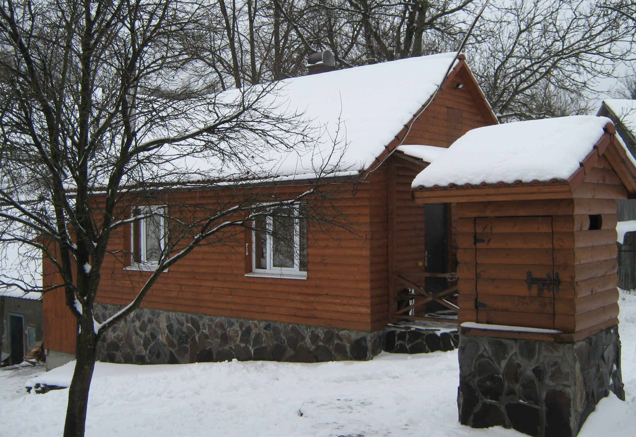 - Двоповерховий будинок на 9 кімнат. На першому поверсі - їдальня на 20 місць (обідні столи, телевізор); 3 двомісні кімнати (у кожній - 2 односпальні ліжка, шафа для одягу); 2 санвузли (у кожному - душ, туалет, умивальник). На другому поверсі - 6 двомісних кімнат (у кожній - двоспальне або 2 односпальні ліжка, шафа для одягу, в одній кімнаті є санвузол - туалет, умивальник); 2 санвузли (у кожному - душова кабіна, туалет, умивальник). Автономне водяне опалення, холодна вода постійно, гаряча - 3 бойлери по 100 л.