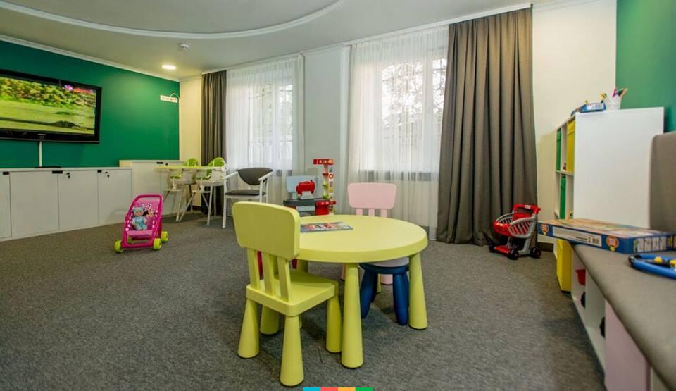 Якщо завітали до нас із дітками, то, допоки ви насолоджуватиметеся спілкуванням, дітки зможуть весело провести час в ігровій кімнаті. Крім того, у вихідні за домовленістю працює няня (до 21:00 год).