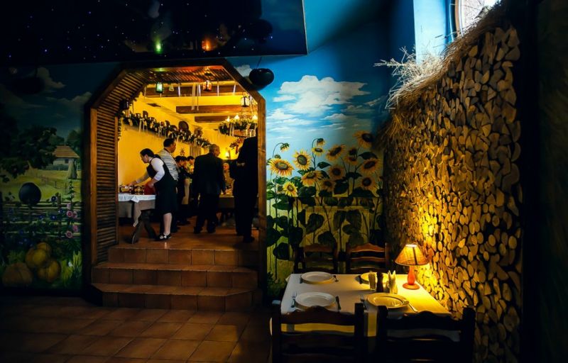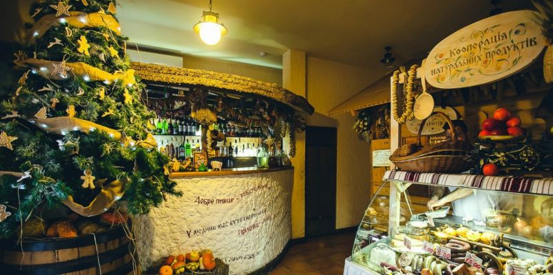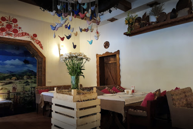 Відвідувачів вабить затишний і колоритний інтер'єр із використанням елементів народного побуту українського села XVIII-XIX століть. Усе тут, ніби в українській сільській хатині тих часів, при цьому доповнене елементами декору з народного побуту.