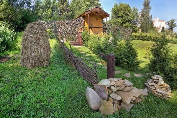 Котедж містить два окремих двоповерхових номери з незалежними входами. На першому поверсі кухня - студіо, камін, вітальня з обіднім столом, телевізор (56 каналів), санвузол. На другому поверсі спальня великої площі, двоспальне ліжко, дитяче ліжко (в одному з номерів), дві тумбочки, шафа, комод, телевізор, балкон-тераса, в одному з номерів робочий кабінет. Номери укомплектовані: кухонний посуд, фен, праска, комплект рушників, банні махрові халати, одноразові тапочки, сейф. Інтернет зона доступу до Wi-Fi, безкоштовно.