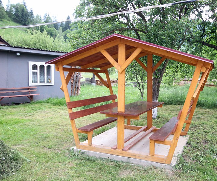 Окремий будиночок на 4 особи (+1 додаткове місце на розкладному кріслі). У будиночку - кухня (електрична плита, холодильник, посуд, мийка), спальня (двоспальне та односпальне ліжка, шафа для одягу, телевізор), санвузол (душ, туалет, умивальник). Господарі живуть у будинку поруч. Опалення: пічне. За потребою - додаткові обігрівачі. Водопостачання: холодна та гаряча вода постійно.