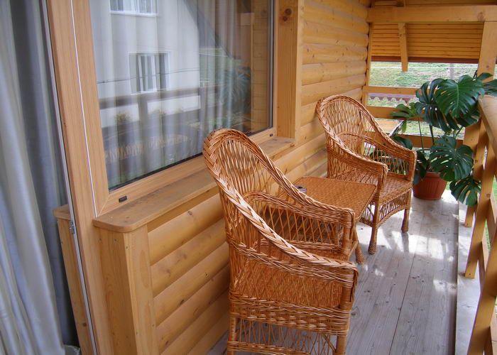 • На третьому поверсі - 2 стандарти (у кожному - двоспальне ліжко, вішалка для одягу, телевізор, балкон з плетеними меблями; санвузол - душова кабіна, туалет, умивальник, фен).