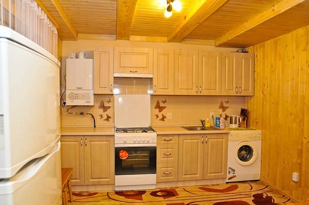 На першому поверсі - обладнана кухня (стіл, стільці, газова плита, електрочайник, мийка, необхідний посуд, пральна машина). На другому поверсі - 2 спальні (двоспальне ліжко, шафа для одягу, телевізор, балкон), 2 санвузли (туалет, умивальник, душ, сушарка для рушників). Опалення: автономне водяне. Водопостачання: холодна та гаряча вода постійно. Можна користуватись кухнею.