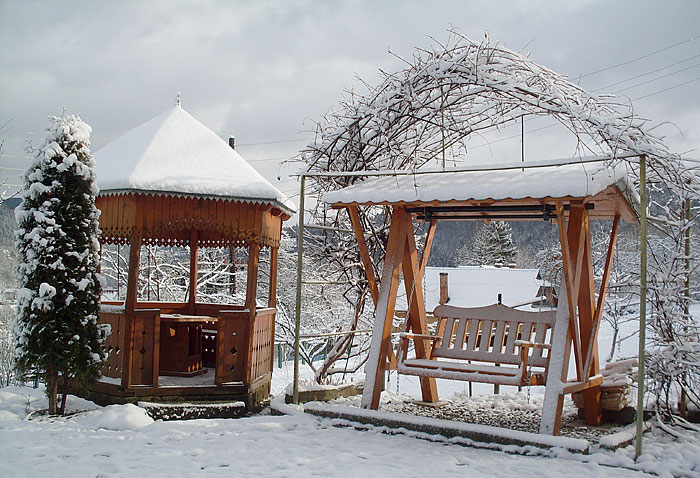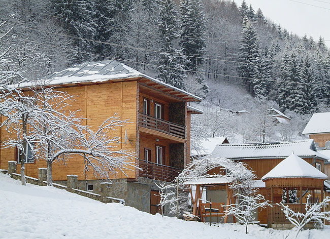 Двоповерховий котедж на 3 номери. На подвір'ї - сад, альтанка, мангал, вулики. На першому поверсі — кухня, їдальня, кімнати господарів. На другому поверсі - хол з плетеними меблями та холодильником; сімейний номер (2 односпальні ліжка, телевізор, додаткове місце - розкладний диван; санвузол - туалет, умивальник, душова кабіна); 2 двомісні номери (у кожному - 2 односпальні ліжка або розкладний диван, телевізор, шафа для одягу, електрочайник; в одному номері є додаткове місце - розкладний диван); санвузол (душова кабіна, умивальник, туалет). Опалення: автономне водяне. Водопостачання: холодна та гаряча вода цілодобово.