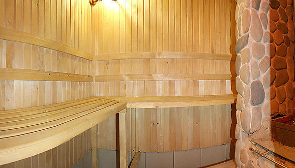 - На першому поверсі - кухня-їдальня (електрична плита, мікрохвильова піч, холодильник, електрочайник, необхідний посуд, мийка, обідній стіл, телевізор), двомісний номер (двоспальне ліжко, шафа для одягу, телевізор), сауна, санвузол (туалет, умивальник).