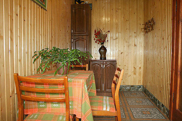- З окремого входу на першому поверсі - двомісний номер (2 односпальні ліжка, що зсуваються, шафа для одягу, телевізор; кухонний куток — холодильник, електрочайник, посуд), санвузол (душова кабіна, туалет, умивальник).