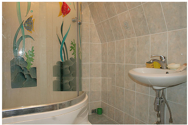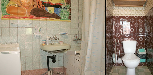 - На другому поверсі - кухня (газова плита, піч, холодильник, електрочайник, посуд, мийка, обідній стіл), двокімнатний номер (вітальня - розкладний диван, шафа для одягу, телевізор, балкон, спальня - двоспальне ліжко, шафа для одягу, комод), 2 двомісні номери (в одному є розкладний диван, шафа для одягу, телевізор, в іншому - розкладний куток, шафа для одягу, комп'ютер), роздільний санвузол (душова кабіна, умивальник; туалет).