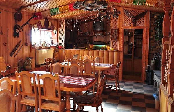 - На першому поверсі — двокімнатний 3-місний номер, у якому — двоспальне ліжко, диван, холодильник, телевізор, санвузол (душ, умивальник, туалет); а також однокімнатний 2-місний номер — двоспальне ліжко, камін, телевізор, санвузла (ванна, туалет, умивальник), мікрохвильова піч, посудомийна машина, посуд, чайник, холодильник;