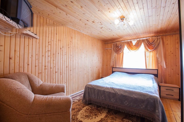 • Двоповерховий будинок — сім двомісних кімнат(три з них напівлюкс та 4 номери одни санвузол на два номера;, в кожній — двоспальне ліжко, телевізор з супутниковим телебаченням, трюмо;на кожному поверсі є віталл