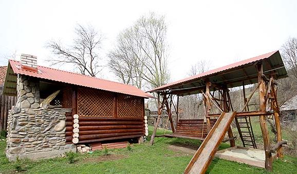 - Двоповерховий будинок на 19 місць. На першому поверсі - кухня (газова плита, мікрохвильова піч, холодильник, електрочайник, посуд, мийка, обідній стіл), вітальня (розкладний диван, односпальне ліжко, телевізор), 2 двомісні кімнати (у кожній - двоспальне або 2 односпальні ліжка, полиці або вішалка для одягу, телевізор), чотиримісна кімната (2 односпальні ліжка, розкладний диван, шафа для одягу, телевізор), роздільний санвузол (душ, умивальник; окремо - туалет, умивальник). На другому поверсі (окремий вхід знадвору) - кухня (кухонне вогнище, електрична плита, мікрохвильова піч, холодильник, електрочайник, посуд, мийка, обідній стіл), 2 двомісні кімнати (у кожній - двоспальне або 2 односпальні ліжка, полиці або вішалка для одягу, телевізор), чотиримісна кімната (двоспальне та 2 односпальні ліжка, шафа для одягу, телевізор), роздільний санвузол (душ, умивальник; окремо - туалет, умивальник).