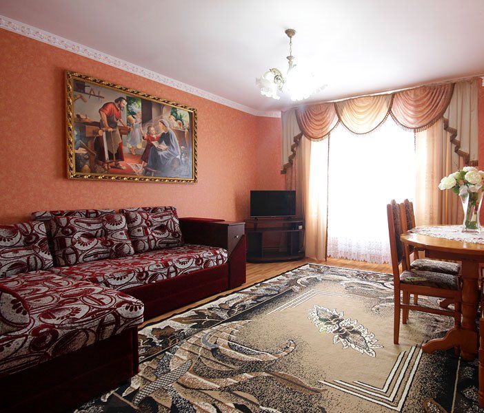 - На першому поверсі "У Миколи" - хол, кухня (газова плита, холодильник, електрочайник, мийка, посуд), вітальня (розкладний диван, стіл зі стільцями, телевізор), санвузол (ванна, туалет).
