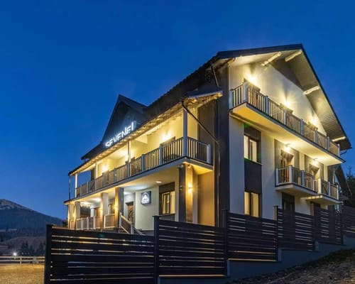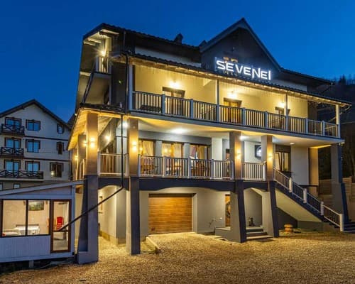 Готель "Sevenei" розташований в селі Поляниця. Номерний фонд готелю складається з 14 комфортабельних номерів, кожен з яких обладнаний терасою, телевізором з кабельним телебаченням та плоским екраном, Wi-Fi, сейфом, просторою ванною кімнатою, банною косметикою, феном, необхідними для комфортного відпочинку. Персонал стійки реєстрації говорить англійською, польською, російською та українською мовами. Також до послуг гостей облаштована безкоштовна приватна парковка, безкоштовне користування зоною барбекю (додатково оплачуються тільки дрова) та загальне користування спа зоною з 14:00-18:00. У готелі є приміщення для зберігання лиж, гості можуть відвідати бар і відпочити на терасі. У ресторані готують страви місцевої кухні. Вранці в готелі "Sevenei" сервірують сніданок з вибором страв з меню, який включено у вартість проживання. Гості можуть покататися на лижах в Поляниці і її околицях або зайнятися іншими видами активного відпочинку. За додаткову плату для гостей організують трансфер від/до аеропорту. Гірськолижний курорт Буковель знаходиться в 3,8 км від готелю «Sevenei», в 13,1 км від залізничної станції Татарів-Буковель, а місто Яремче - в 22 км.