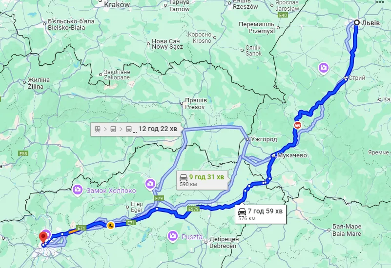 - Відстань між Львовом і Будапештом становить близько 560-600 км і залежить від вибраного маршруту.