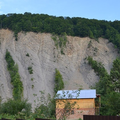 Скеля отримала таку назву завдяки своєму незвичайному вигляду. Вона утворена породами крейдяного фліша. Це різновид морських порід уламкового походження. Вони не покриті лісом і здалеку чимось нагадують шкіру слона. Скеля розташована в підніжжі однієї з найвищих вершин тутешніх місць – гора Маковиця (984.5 м).