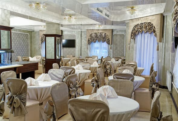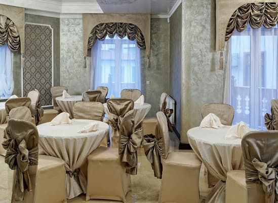 Гості могуть відвідати ресторан європейської та української кухні або скористатися послугою room-service.